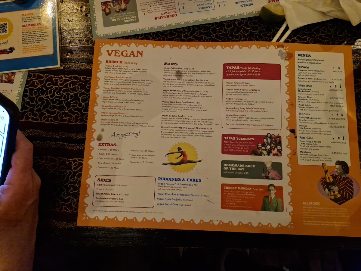 Vegan bacon, falafel, hash browns, baked beans, roasted tomato, flat mushroom, greens & peppers and sourdough or white toast