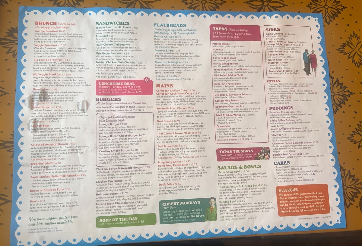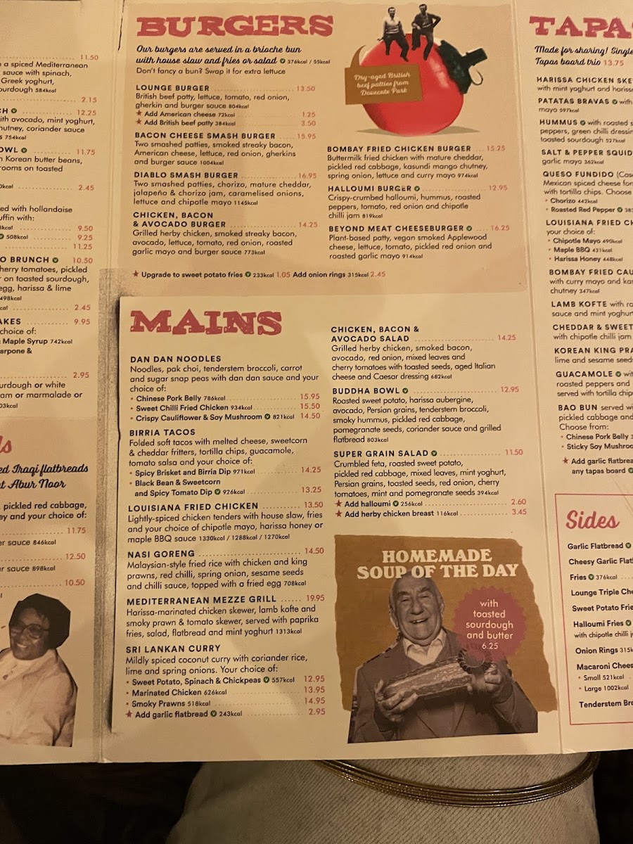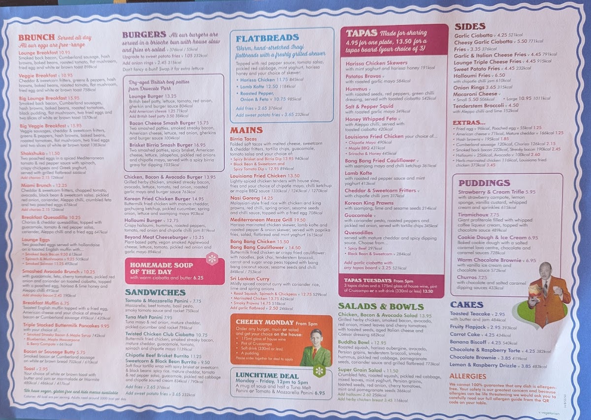 The menu at Pescado Lounge in Whitby is a vibrant celebration of flavors that caters to all tastes and dietary preferences. Brunch offerings like the Lounge Breakfast and Big Veggie Breakfast set a hearty tone, while Breakfast Muffin With Streaky Bacon adds a classic indulgence. Sandwiches and toasties, from the comforting Grilled Cheese Toastie to the adventurous Brisket Birria Toastie, are joined by substantial burgers such as the Bacon Cheese Smash Burger and Bombay Fried Chicken Burger. Mains impress with dishes like Dan Dan Noodles With Chinese Pork Belly and Birria Tacos With Spicy Brisket And Birria Dip, while the tapas selection-including Patatas Bravas and Salt & Pepper Squid-invites sharing and exploration. Sides like Lounge Triple Cheese Fries and Cheesy Garlic Flatbread complement the mains, and desserts, from Berry Cheesecake to Warm Chocolate Brownie, deliver a satisfying finish. Gluten-free and vegan variations mirror the main menu, ensuring inclusive options such as GF Bacon Cheese Smash Burger, Vegan Sri Lankan Curry, and Vegan Chocolate & Raspberry Torte. For younger diners, the kids’ menu features approachable dishes like GF Hummus & Crunchy Carrot Sticks Pot and Veggie Breakfast. Beverages are equally varied, with coffee classics, bubble teas, homemade blended drinks, and cocktails including Lounge On The Beach and Classic Margarita, alongside non-alcoholic options like the Italian Spritz. Seasonal specials for Christmas 2025, such as Korean King Prawn Cocktail and Sweet Potato, Chestnut & Sage Soup, showcase the lounge’s commitment to creativity. Overall, the menu balances comfort with culinary innovation, offering a thoughtful selection that is both indulgent and adaptable for any dietary need, making every visit a flavorful experience.